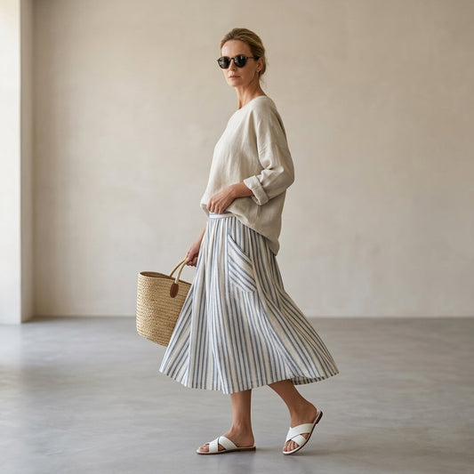 Risparmi il 58%Aurora – blouse comfort and striped midi skirt