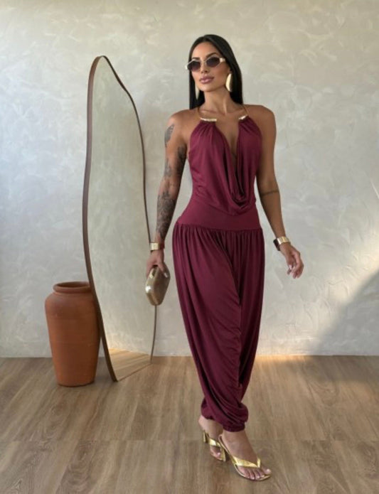 Gioia dress. Timeless elegance captured in a fluid and sensual silhouette. The draped jumpsuit is designed for the woman who knows how to effortlessly turn heads.